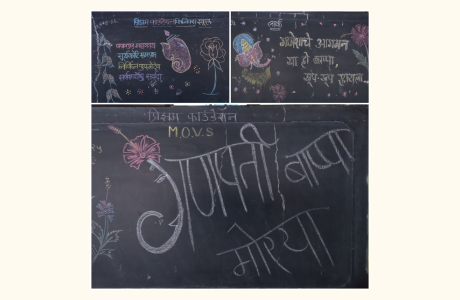 गुरुवार दि. २८/०८/२०२५ रोजी प्रिझम फाऊंडेशन मध्ये गणेश स्थापना करण्यात आली. यावर्षी ‘जागतिक वारसा स्थळ’ मानांकनात निवड झालेले १२ किल्ले या विषयावर गणपती सभोवती व हॉल मध्ये सजावट करण्यात आली. शिक्षकांनी विद्यार्थ्यांच्या मदतीने रायगड किल्ल्याची प्रतिकृति ( मॉडेल ) करून किल्ल्यामध्ये गणपती बसविला. तसेच विद्यार्थ्यांनी इतर किल्ल्यांचे चार्ट व चित्रे करून आणली होती. शाळेचा विद्यार्थी शौर्य मुरकुंबी व मान्यवरांच्या हस्ते पूजा व आरती करण्यात आली.