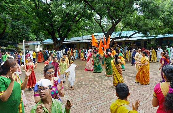 विद्यार्थ्यांनी हंडी रंगविली होती. सगळे विद्यार्थी पारंपरिक वेश धारण करून आले होते. कृष्णाची वेशभूषा करून आलेल्या विद्यार्थ्याने दहीहंडी फोडली. सर्वांनी लेझीम खेळून दहीहंडी उत्साहात साजरी केली. सगळ्यांना दहीकाल्याचा प्रसाद वाटण्यात आला.