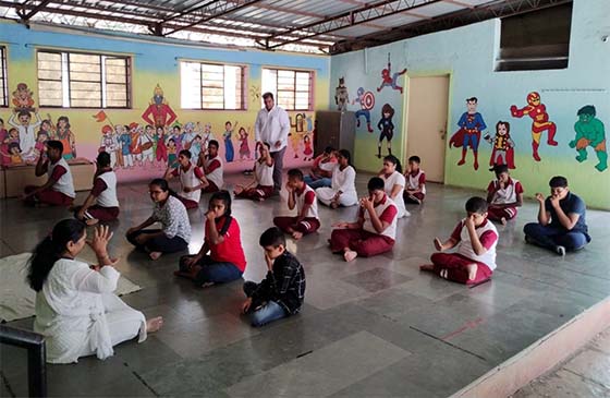 टाळ्याचे प्रकार प्रेशर पॉइंट आहेत आणि रोज टाळ्या वाजविल्याने खूप फायदे होतात हे सांगण्यात आले. विद्यार्थ्यांनी वेगवेगळे नामस्मरण करून जोरदार टाळ्या वाजविल्या. हास्यासन करताना विद्यार्थ्यांचा आनंद जाणवत होता. मेडीटेशन मधून अवयव कृतज्ञता ध्यान घेतले. श्वसना मधे सर्वानी शांतपणे सर्व सूचना ऐकून घेतल्या व मेडीटेशन केले. ॐ व शांती पाठ घेऊन योग सत्राची सांगता झाली.