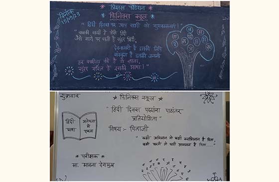 हिंदी दिवस, हिंदी भाषा के महत्व और महत्ता पर ध्यान देने के साथ भारत की भाषाए विविधता को बढावा देने और जश्न के लिये मनाया जाता है. पाठशाला में इस अवसर पर शुक्रवार दि. १५ -०९-२०२३ को हिंदी कविता पाठांतर प्रतियोगिता "पिताजी" इस विषय पर आयोजित की गयी थी. प्रमुख अतिथि और प्रतियोगिता का परीक्षक के तौर पर मा. भावना देशमुख मॅ. उपस्थित थी. इस प्रतियोगिता में सभी छात्र छात्राओंने सहभाग लिया था. प्रतियोगिताओं में प्रथम, द्वितीय और उत्तेजनार्थ ऐसे स्थान प्राप्त विद्यार्थियोंको पुरस्कृत किया गया.