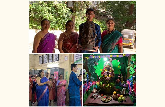 गणेश स्थापनेत विद्यार्थ्यांबरोबर संचालिका, मुख्याध्यापिका, सेवक वर्गाने सहभाग घेतला. विश्वस्त मा. रंजनाताई पटवर्धन व प्रिझम सभासद श्री. शशिकांत पटवर्धन यांनी गणेश दर्शन घेतले.