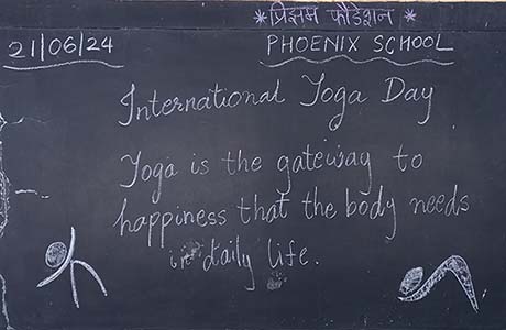 International Yoga Day’ celebrated on 21 - 06 - 2024 in Phoenix School. Importance of yoga was narrated to the children after assembly. There were 2 groups. The younger children did same yoga ‘asanas’ and the elder children portrayed their yogic skills under the guidance of the Principal and all teachers.